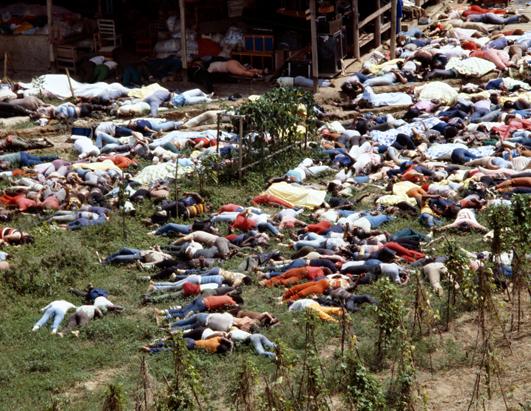November 18, 1978: Jim Jones, leader of the Peoples Temple in Jonestown, Guyana, leads a mass suicide rite where 913 people die, including 276 minor children.Over 900 Temple members died in Jonestown, all but two from apparent cyanide poisoning, in an event termed “revolutionary suicide” by Jones and some members on an audio tape of the event and in prior discussions. The poisonings in Jonestown followed the murder of five others by Temple members at Port Kaituma, including United States Congressman Leo Ryan. Four other Temple members died in Georgetown at Jones’ command. (Wikipedia)