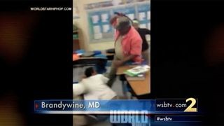 According to WTTG-TV in Washington, D.C., the incident happened May 15 at Gwynn Park Middle School in Brandywine. The video shows a man hitting students with an object as children scream and laugh in the background.