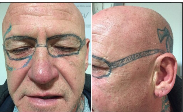 He looked in the mirror to find a pair of glasses permanently tattoed on his face.