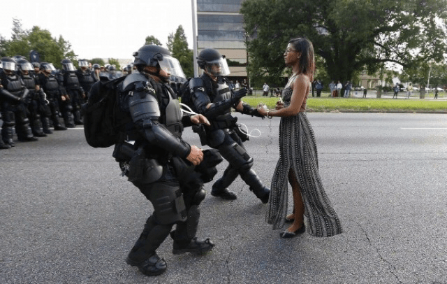 One of the most powerful pictures on social media is this picture of Ieshia Evans. The single mother of a 5 yr old little boy was 1 of about 100 people, including a Black Lives Matter activist, arrested for obstruction of a highway during the Black Lives Matter rally in Baton Rouge.
