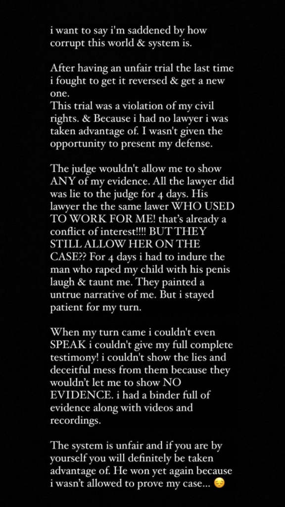 After losing her second trial and being ordered to pay her ex lover over $1 million in damages, Britney, also known as Curlyy Red, took to her IG to express her frustration with the criminal justice system and vows to fight tooth and nail and appeal the ruling.