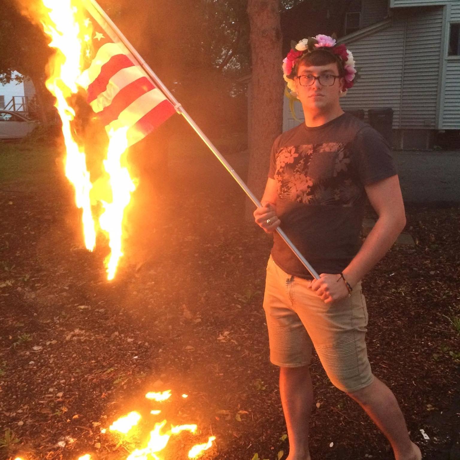 According to The News-Gazette, Bryton Mellott, 22, posted several photos on Facebook on July 3 showing him burning the American flag. On the photo post, he included a statement about why he is “not proud” to be an American.