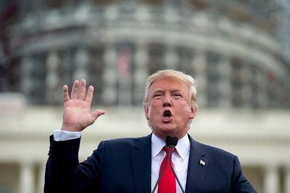 Donald Trump, president and chief executive officer of Trump Organization Inc. and 2016 Republican presidential candidate, speaks during a Tea Party Patriots rally against the Iran nuclear deal on Capitol Hill in Washington, D.C., U.S., on Wednesday, Sept. 9, 2015. A revolt among U.S. House Republicans delayed action on the Iran nuclear deal today as some members insisted they aren’t bound by a Sept. 17 deadline in their efforts to kill the agreement. Photographer: Andrew Harrer/Bloomberg via Getty Images
