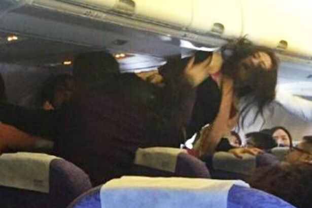Shortly after, a wild scene was caught on camera as five women began fighting mid-flight.